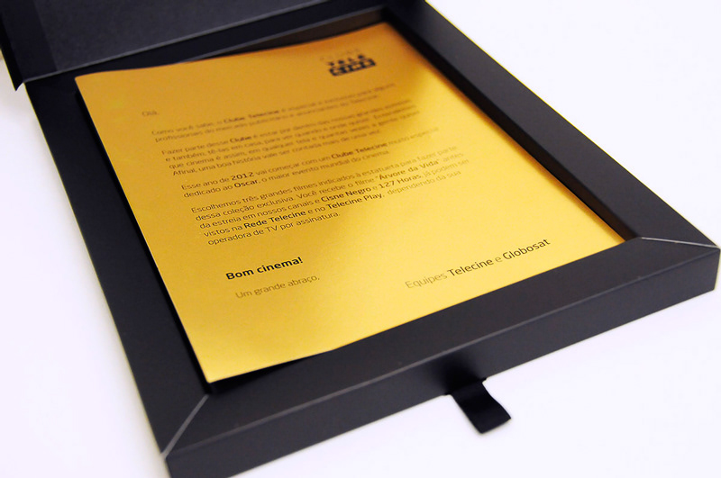 Projeto desenvolvido para a Rede Telecine, canal de tvbrasileiro de filmes, pertencente ao grupo Globosat, na Agência VX Comunicação.O Box Especial Oscar é uma ação do Clube Telecine para presentear seus clientesVips, no mês de Fevereiro de 2012.